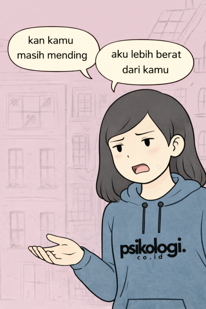 Kalimat “kan kamu masih mending” atau “aku lebih berat dari kamu” mungkin terdengar biasa. Tapi secara psikologis, perbandingan seperti ini bisa melukai tanpa disadari. Setiap orang menjalani hidup dengan latar belakang, luka, kapasitas mental, dan sumber daya emosional yang berbeda. Membandingkan satu perjuangan dengan yang lain sama saja dengan menghapus pengalaman subjektif seseorang. Kamu tidak […]
